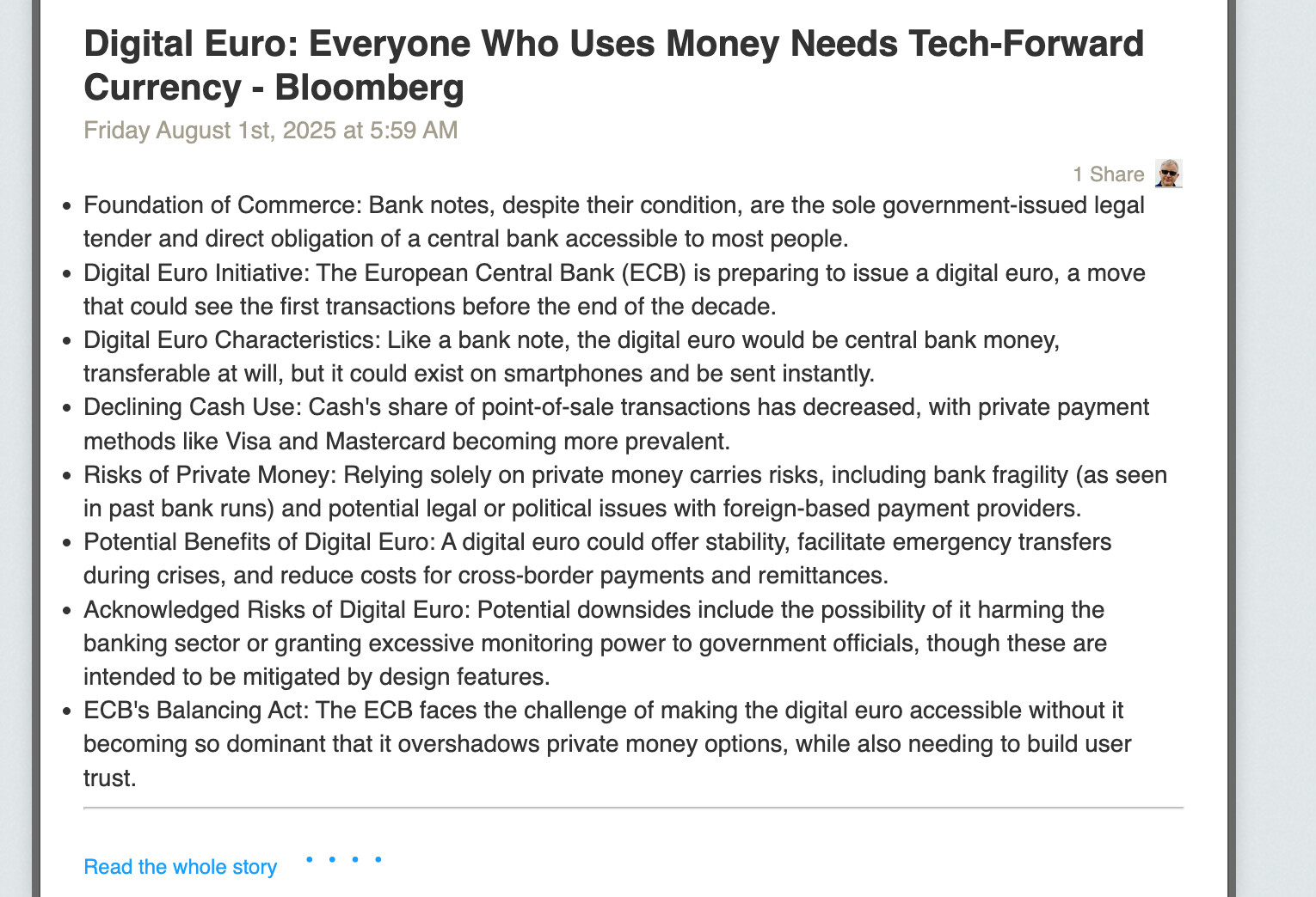 When done via the API it posts my summary, but not the article body - link. I’m thinking - maybe there’s something inside HTML that NewsBlur doesn’t like? Maybe publish the list of allowed HTML tags that are acceptable?