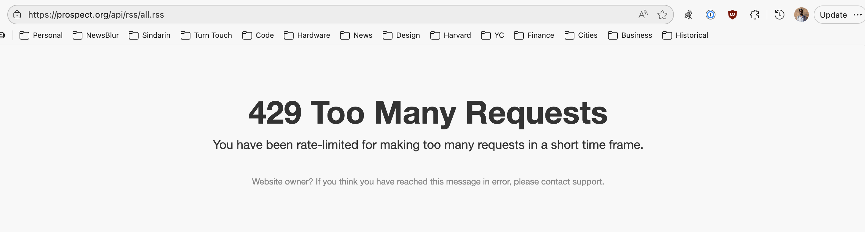 So they’re doing something to discourage fetches. NewsBlur backs off on 429’s, but they keep giving them. I deployed a change to how we handle 429s, so it may help, but I suspect something’s up with the site, since it went from a 404 to a 429.