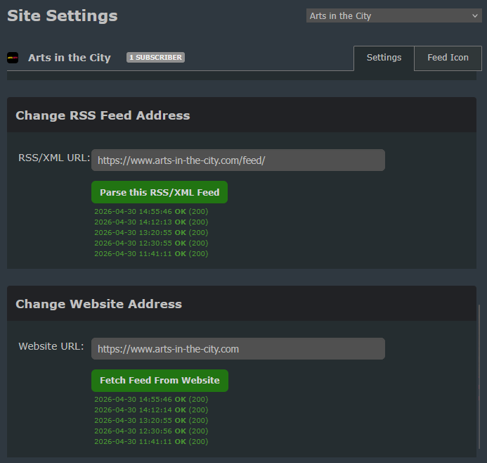 There’s no new story since 22/04 for this feed but it don’t see errors on the “site settings”: