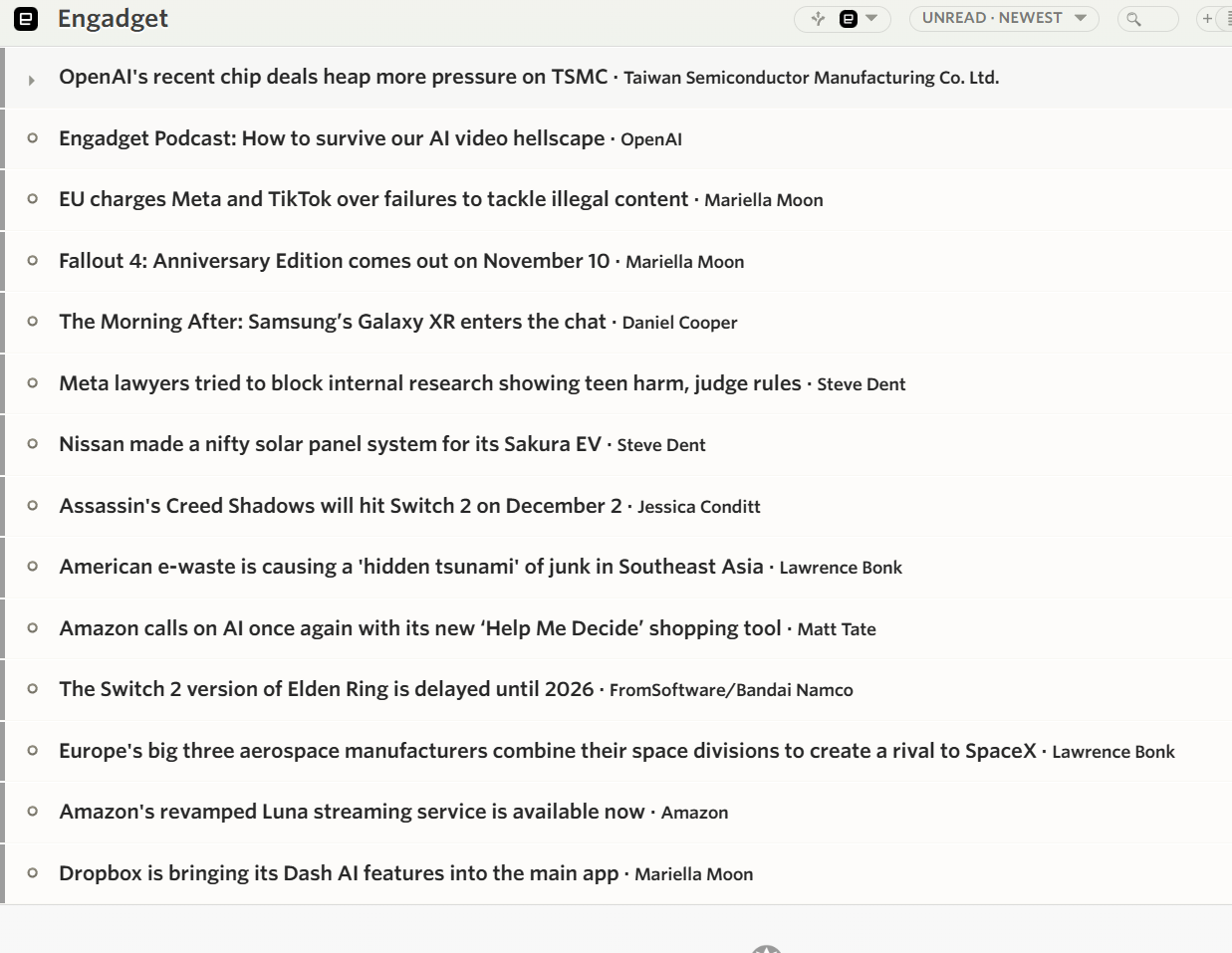 If I set it to “all mode” and click on an individual feed (say engadget). It will seemingly show new items in fhe feed (but this only happens for some feeds).