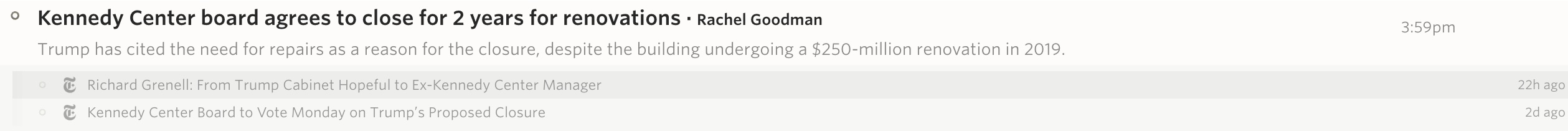 I logged into desktop today and am thrilled to see that potential duplicate stories from other feeds are now grouped under the story you’re viewing in the list feed I love having a variety of RSS feeds but seeing the same story come through 15 times a day gets repetitive. This lets me go to my preferred source, get what I need, and happily mark the rest as read!