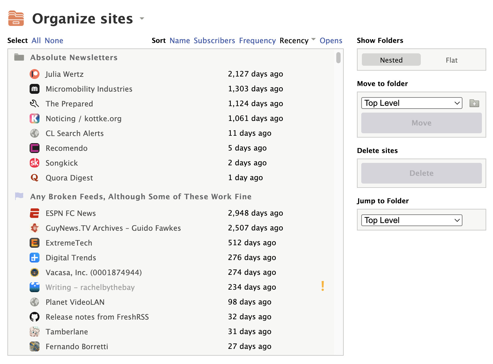 Identify/remove inactive feeds