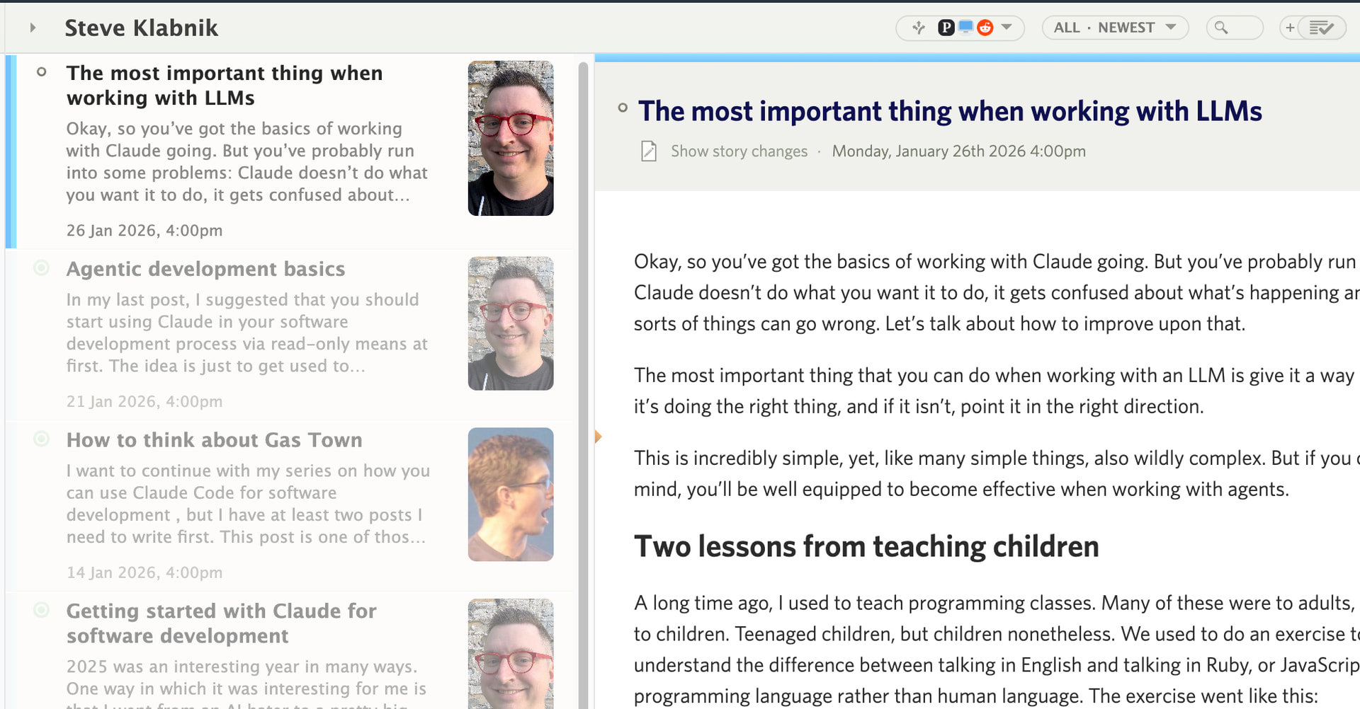 Weird that it shows up empty. I subscribed to NewsBlur and it shows the latest stories: