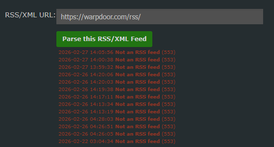 Issues with feed warpdoor.com