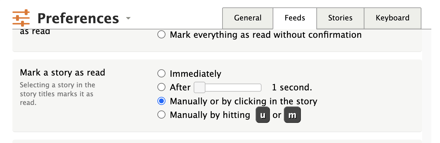 'Mark as read on click / keypress only' setting seems broken, or I don't understand the use case