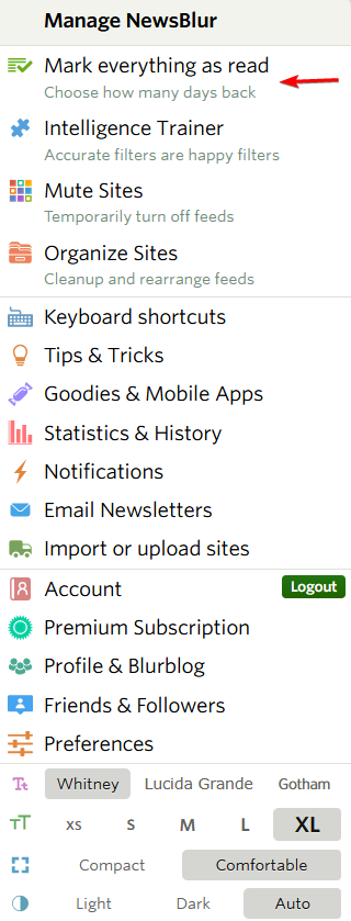 I have the “Days of unreads” option marked as “Mark stories as read after“ 1 day.