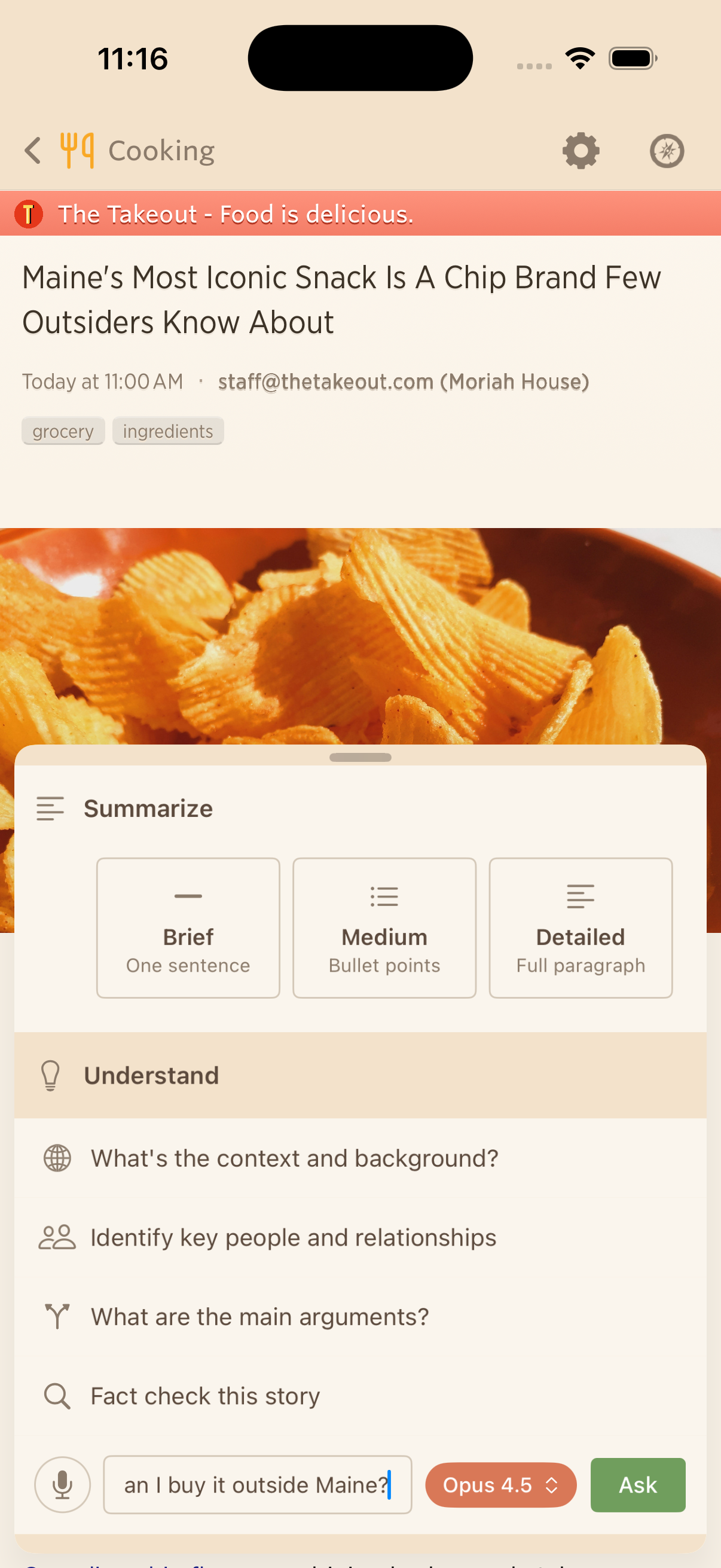 Ask AI brings the same AI-powered Q&A from the web to your phone and Mac. Select a story, tap Ask AI, and ask questions about it. Summarize a long article in one sentence, get the backstory on a developing situation, or fact-check a claim. Pick from multiple AI models and keep the conversation going with follow-ups.