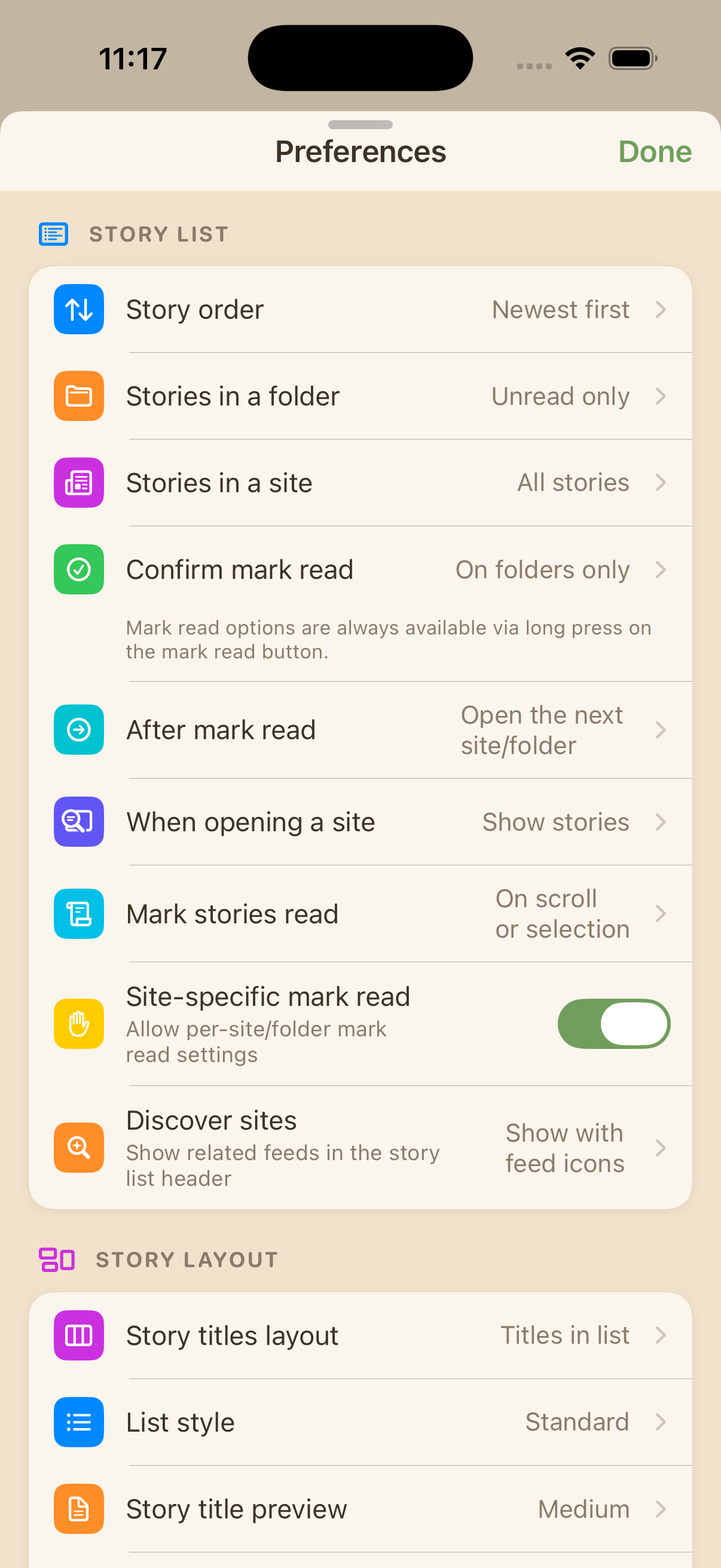 - Mark Story Read options: mark read on scroll, on selection, after an interval, or manually.