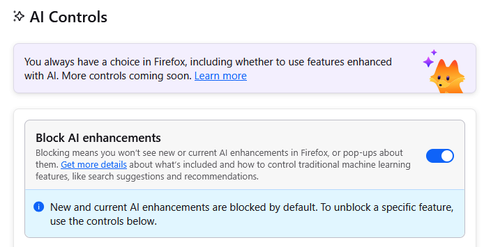 Yes, like how Firefox added a master switch for all current and future LLM features. This way both the people who don’t mind being opted into these, and the people who never want to engage with any LLMs can be satisfied.
