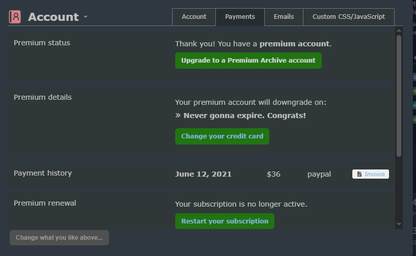 So I am assuming this feature has been deployed already. When I went to check the box. First of all it’s missing. Also see screen shot. If my premuim is never going to expire like what I think it’s saying. How is it going to renew and charge me? Not accepting a free ride. Your service is very good.