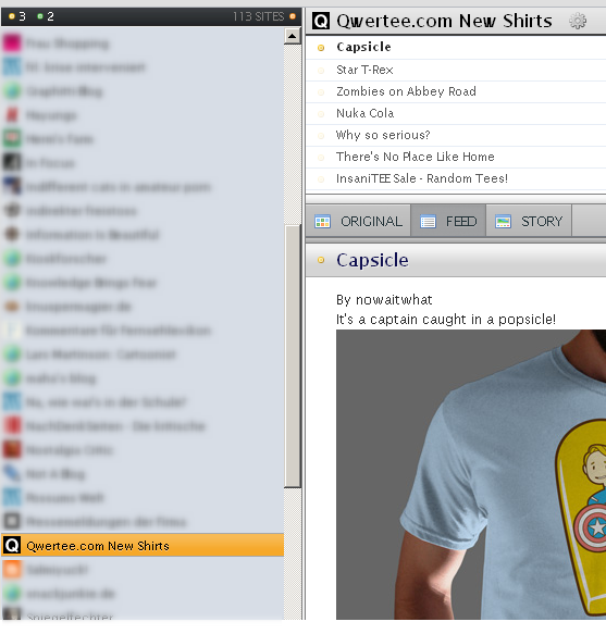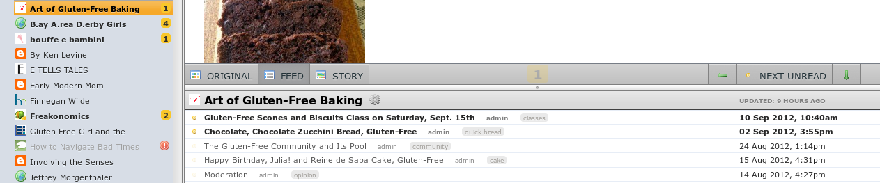 Now that I’m aware of this problem, I’ve noticed that more than half of all my feeds indicating 1 Unread item in the Feed list actually have a second unread item in the feed’s story view. The second item’s timestamp will range from 1 day to almost 2 weeks old, so it’s almost certainly something the RSS scraper found a long time ago–not just a matter of short-term DB sync.