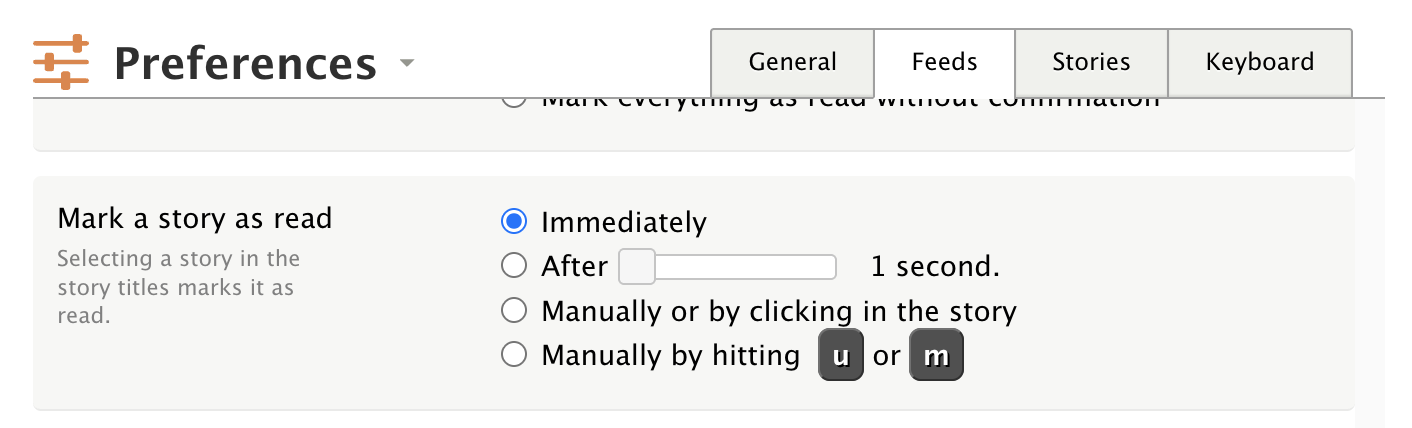 It used to be that you could left click on stories and they would be marked as read. That is no longer the case. They can still be marked as read using the mark all as read option or the keyboard shortcut “u”. I observed this with stories in feed view; it appears to affect other views as well. Looked at the js console, saw no errors.